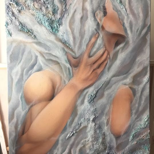 Тој е млад уметник, на кого уметничката сцена допрва му се отвора. Со страст се посветува на овој циклус масла на платно каде искрено им се предава, а пред нас се “разголува”. Долготрајниот процес на создавање на делата, од поставување, сликање, до градење на пастата која до тридимензионална форма излегува од рамките на класичниот процес на сликарството, не воведува во неговата посебност на записот. Техниката на работа, неговото сликарство е дел од неговиот карактер кој во својата смиреност нуди извесен шок што ве вовлекува, со делото да се соживеете или да се обидете да го појмите, и, воспоставите контакт. Сензуалноста, може да се почувствува особено во извитканите тела, нивната карикирана поставеност, и со тоа сугерира натчовечкa флексибилност и задоволство во посебноста. Несовршеноста во анатомијата е намерен сугестивен ракопис кој сокрива и открива органски форми. Насловите ќе ни бидат патоказ за нашето емоционално паметење, Бесконечност на формата, Проток на нишало, Трансценденција, итн.